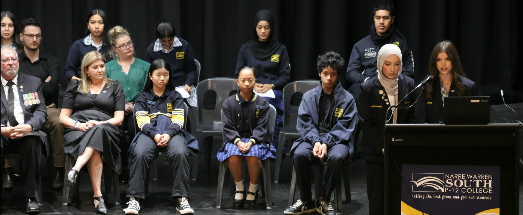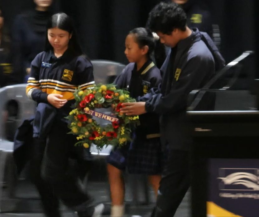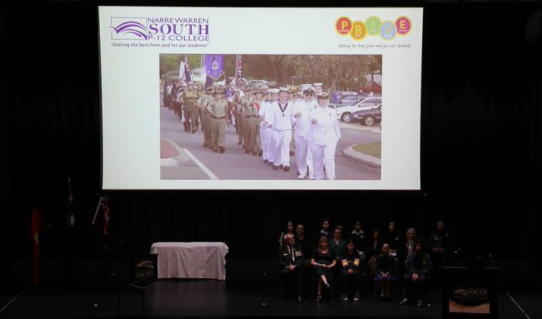 On Thursday the 24th of April, Narre Warren South P-12 College held an assembly in recognition of ANZAC Day. College Captains Somayeh Ahmadi and Ella Larche led the assembly with an explanation of the history of ANZAC Day, and Principal Justine Smyth spoke about the importance of ANZAC values and how we can still demonstrate them today. We were fortunate to hear from Dandenong-Cranbourne RSL President Lance McDermott about his history of service and the different ways we can show respect for the ANZAC legacy. College Vice Captains Elaha Akbari, Diya Chandapeta, Zahra Ibrahimi and Selena Meas conducted the rest of ANZAC Day service, including the reciting of the Ode of Remembrance, playing of the Last Post, observation of a minute’s silence and playing of the Reveille. The assembly concluded with the performance of the Australian and New Zealand national anthems by Kenan Moors, and was wrapped up by our Primary Captains, Elijah Lui, Ysabella Olidana and Victoria Ty. We commend all members of the school community for their respectful participation in this important assembly.